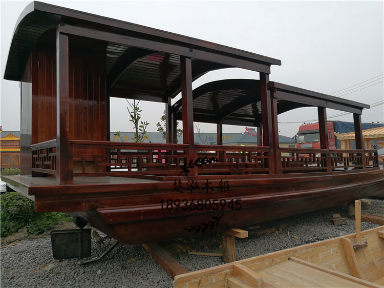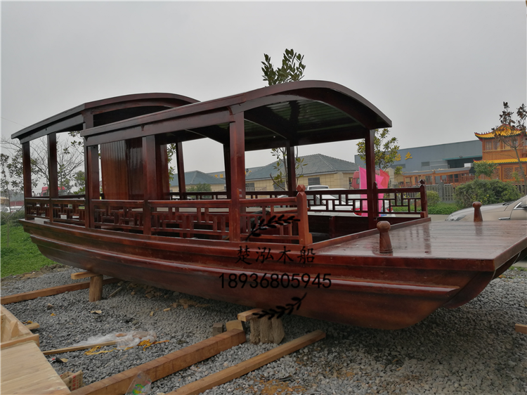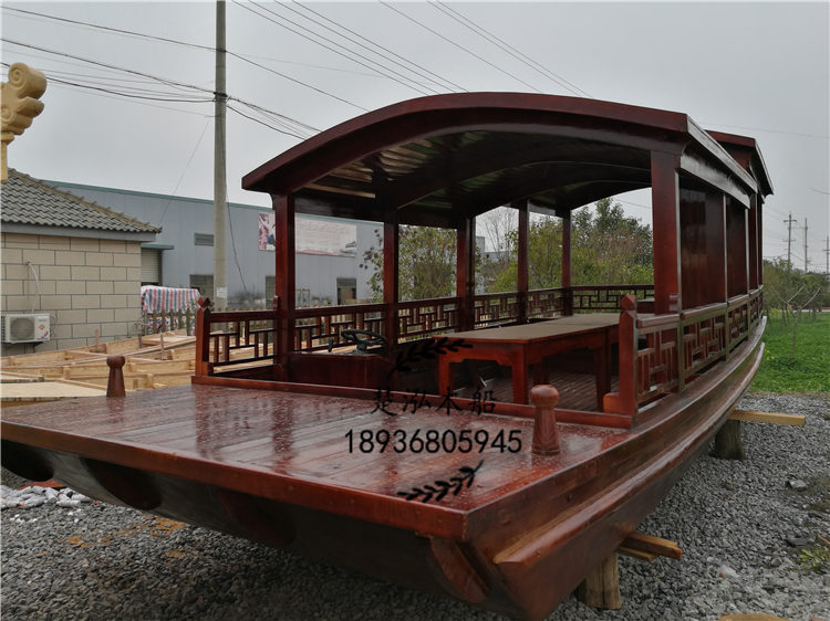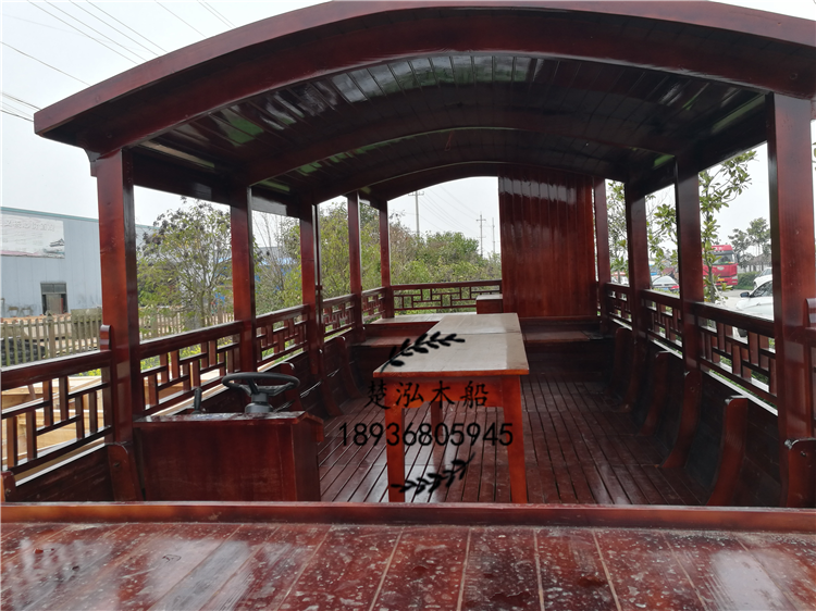 这款高低蓬是湖南安化县一个农庄客户定制的一艘8米观光旅游船,她的全身穿上一层“柚木色外套”,在阳光照射下格外迷人。另外她集前置方向盘动力,方便游客在水面上畅玩。在这里她还有一个更人性化设计,就是船上设有一个卫生间。大家是不是对她很期待,想一睹她的风采。下面就是她的照片:
